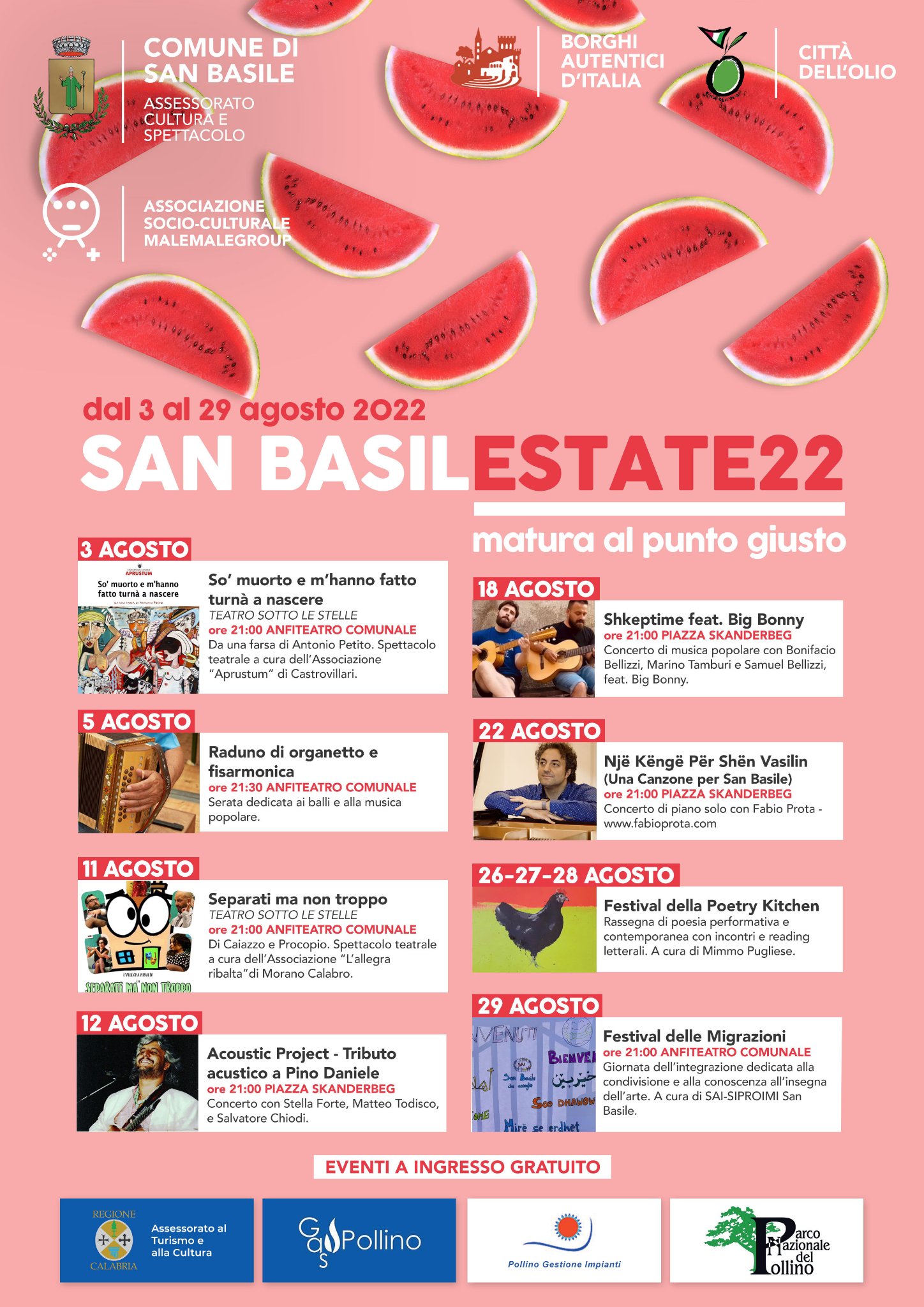 Inizialmente previsto per lunedì 22 agosto, nella cornice di Piazza Skanderbeg a San Basile (CS), il concerto in piano solo “Një Këngë Për Shën Vasilin” nel quale il pianista Fabio Prota renderà omaggio al paese e al popolo arbëreshë, a causa delle avverse condizioni meteo, è rinviato a martedì 23 agosto presso il Lab Center di San Basile (CS).