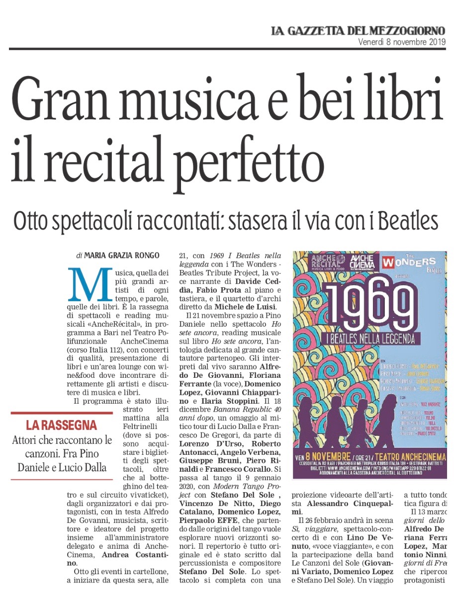 “La Gazzetta del Mezzogiorno” Bari, 08-11-2019 Mi piace Caricamento... Lascia un commento Cancella risposta Δ
